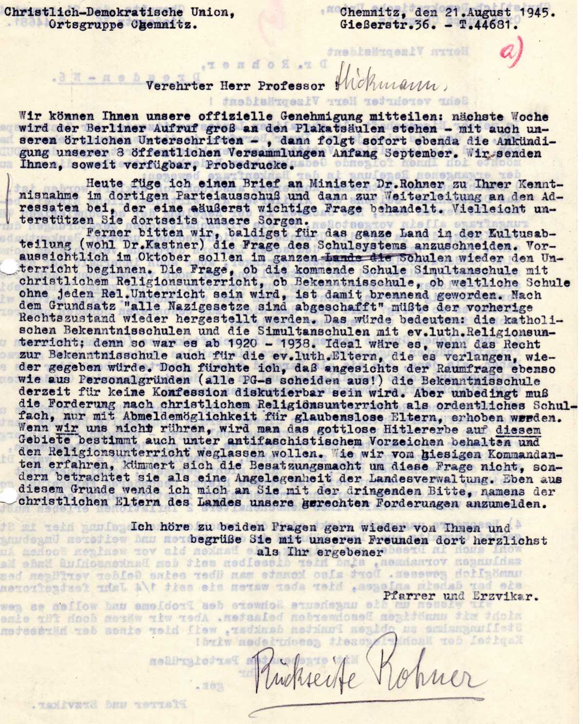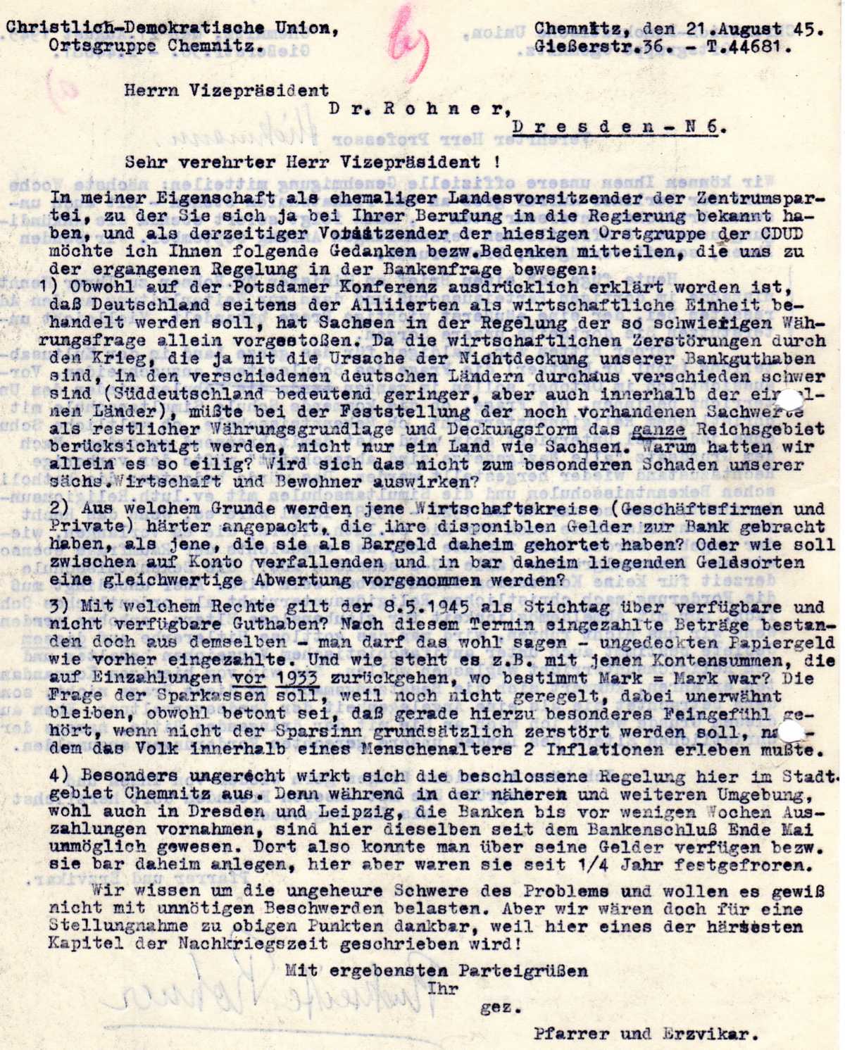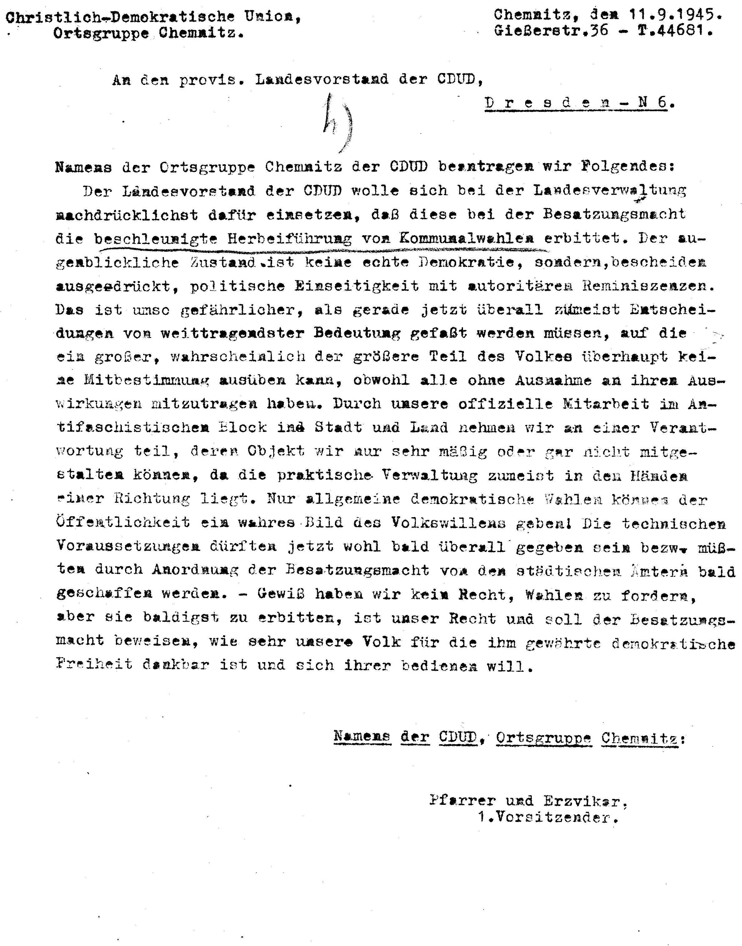 21.September 1945 | CDU Sachsen -Kirsch Hinweis Zeitungsartikel | Seite 1 |