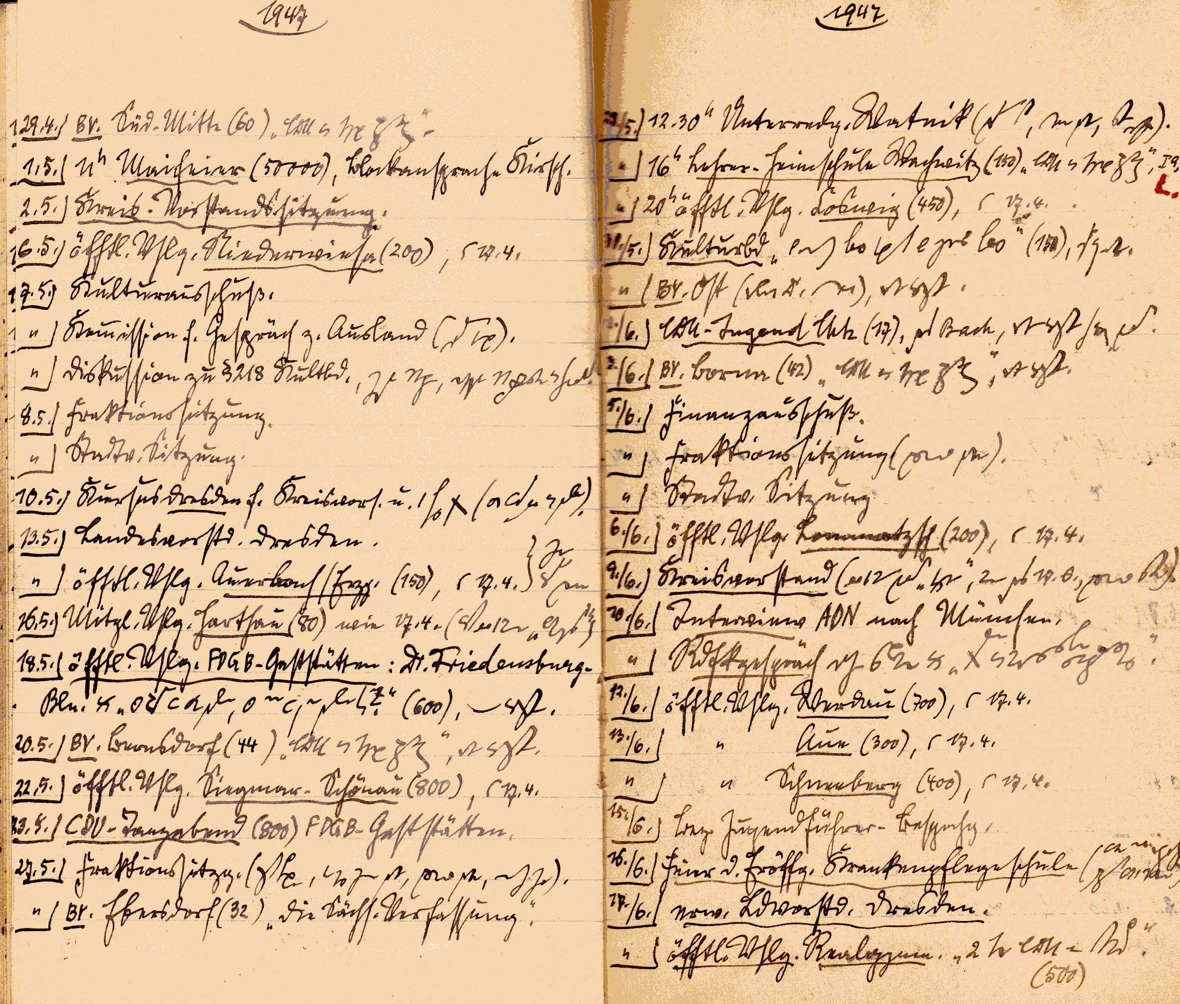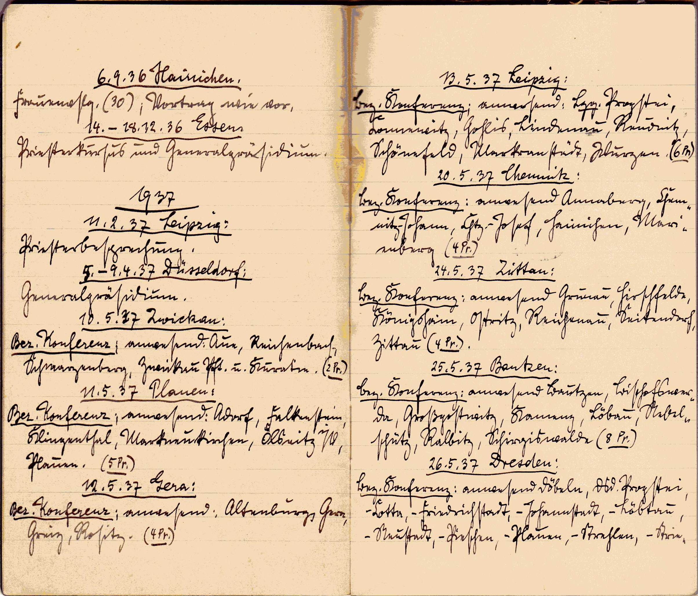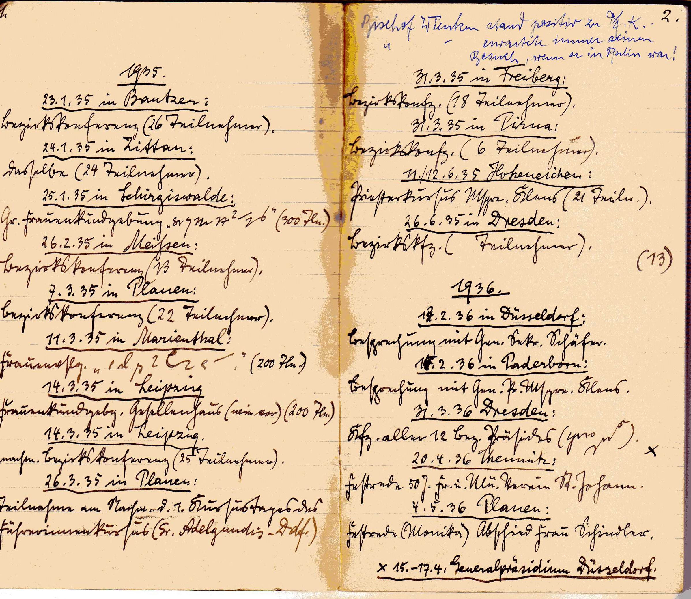 Im Nachlass befindet sich der Terminkalender von Pfarrer Kirsch vom 23. Januar 1935 bis zum 25. Mai 1949. Dieses Verzeichnis seiner öffentlichen Auftritte ist ein beredsames Zeugnis der enormen Arbeitsintensität dieses Seelsorgers und Politikers. Möglich wurde diese sicher auch durch die Tatsache, dass er engagierte Mitarbeiter in der Gemeindeseelsorge hatte, welche ihm, wie auch die Gemeindemitglieder von St. Joseph, für diese Arbeit den Rücken frei hielten.